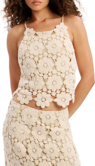 Complete your look with the breezy, boho-chic style of this flowery sleeveless top in a slightly cropped length.