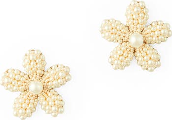 Beads and faux pearls create intricate dimension in these floral earrings.