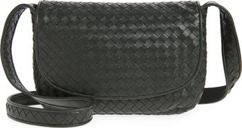 The label's intricate intrecciato weave brings signature texture to this lambskin-leather messenger bag that's carefully crafted in Italy with a curved flap.