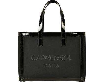 Mini tote handmade in Italy now available in black canvas! Crafted from black and white vegan leather trim and canvas