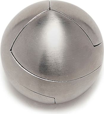Three smooth pieces of die-cast stainless steel form a sleek spherical puzzle that satisfies fidgety fingers and doubles as a stunning, modern paperweight.