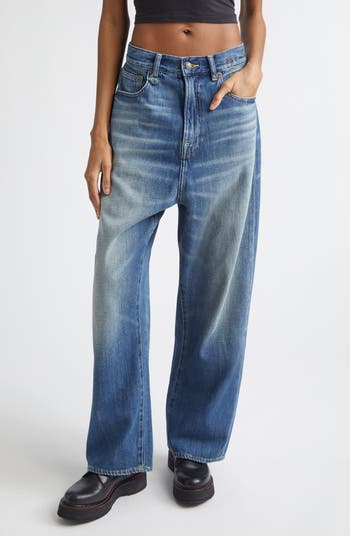 Cut from nonstretch Japanese denim, these slouchy wide-leg jeans are grunged up with a whiskered fade, nicks and abrasions. At the patch pocket, R13's signature snake stitching nods to the coiled mascot of a famous flag rooted in rebellion.