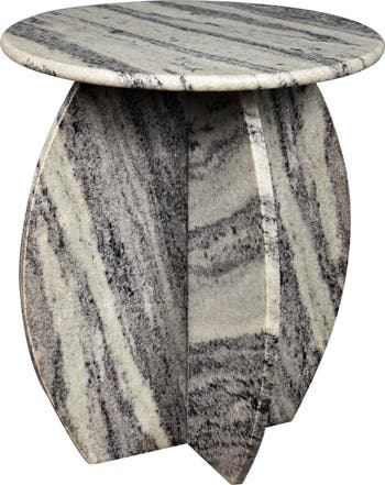 Classic and timeless, this round marble accent table is a chic minimalist design. The tabletop and x-shaped base are made entirely from natural stone. Set one beside a bedroom chair, or use a pair in front of a contemporary living room sofa.