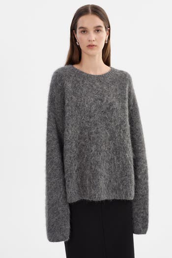 Softness you can feel. The Vera Oversized Knit Sweater is crafted from a brushed alpaca knit that offers a luxe, airy texture with a naturally relaxed drape. Featuring a classic crew neckline, elongated sleeves, and an easy fit, it's an elevated essential that pairs effortlessly with denim, leather, or tailored bottoms.