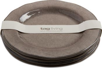 - Veranda Melamine Salad Plates are made of durable BPA-free melamine, featuring a classic gray design, each plate measures 9 inches in diameter, and the set includes 4 plates that are dishwasher safe for easy cleaning.