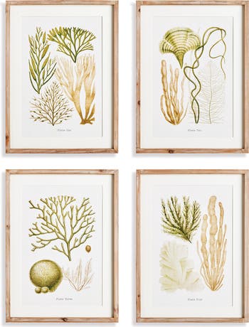 - Ready to hang. Coastal-Inspired. Includes mat. Set of 4 each sized 19. 75 x 1 x 26. 75. Hang together for instant gallery or display separately. Portrait orientation. Natural color Fir Wood Frame.