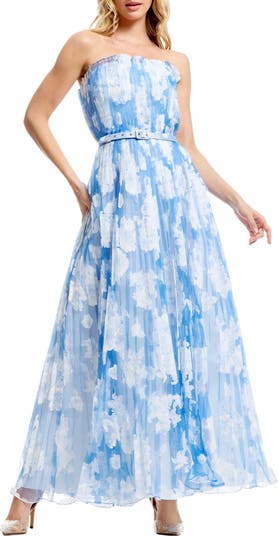 Verity Pleated Belted Strapless Gown