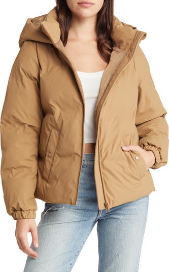 Casual-cool style is the name of the game with this zip-front puffer coat topped with an oversized hood.