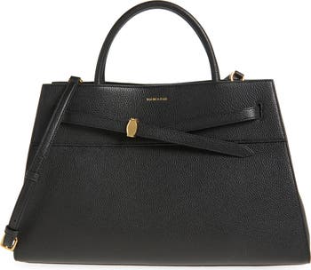 A large interior capacity with zip and slip pockets enhances the organizational appeal of a spacious and structured tote made from rich pebbled leather.