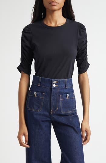 Ruched sleeves—a brand signature—make a pima cotton T-shirt feel a bit more special.