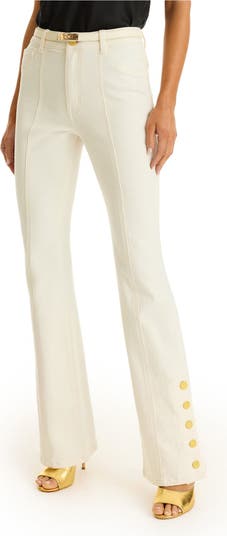 The Veronica Button Jean turns heads everywhere you go. Crafted from signature four-way stretch denim, these mid-rise flares feature a flattering leg-elongating silhouette enhanced by stitching along the front seam. A distinctive side fashion button detail adds elegance and luxury to this wardrobe essential. Designed to move with you while maintaining its shape, this denim pairs perfectly with your favorite blouse or blazer.