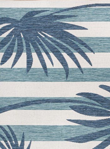 Veronica Classic Beach Stripe and Palm Leaf Indoor/Outdoor Area Rug