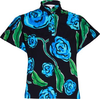 De Loreta Veronica Puff Sleeve Cotton Blouse, Main, color, Petrona Print