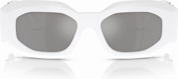 Gleaming Medusa logos illuminate the temples of statement-making sunglasses designed with angular frames for visual intrigue.