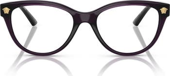 Logo medallions make a signature statement at the temples of these cat-eye optical frames crafted in Italy.