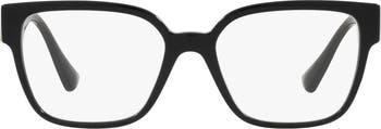 Sparkling jewels frame signature logo medallions at the temples of Italian-crafted glasses shaped in a classic square silhouette.
