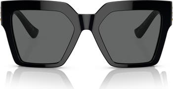 Polished Medusa branding adorns the sculpted temples on Italian-made sunglasses styled in a butterfly silhouette.