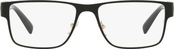 Polished Medusa logos make a signature statement at the temples of these rectangular optical frames crafted in Italy.