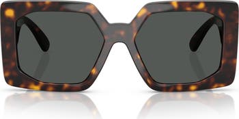 The label's signature Medusa medallion stares out from gleaming temples on square sunglasses that stun with modern luster.