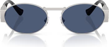 Signature Medusa-head logos stare out from the temples of chic Italian-made sunglasses in an oval silhouette with UV-protective lenses.