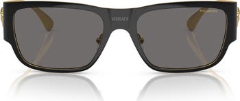 Bold Medusa logo hardware gleams at the temples of Italian-made sunglasses styled with glare-reducing polarized lenses.