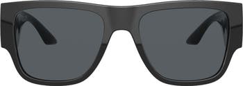 Greek key hardware gleams at the temples of statement-making Italian sunglasses featuring classic square lenses.
