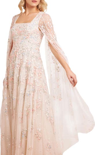 Versailles Ditsy Cape Sleeve Ankle Gown