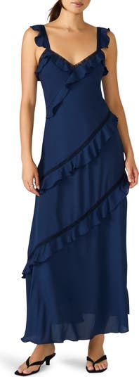 Floaty frills flutter on this ethereal figure-skimming maxi trimmed with lovely lace.