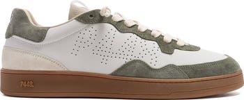 - White leather upper with perforated P448 logo