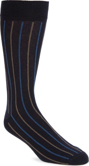 A blend of cotton and nylon brings breathable comfort with a touch of polish to dress socks crafted with enhanced stretch for easy movement. Patterned in colorful pinstripes, they make a lively addition to your formal and semiformal wardrobes.