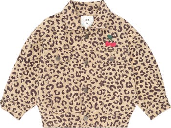 Their new favourite jacket. Made from soft-as-butter denim that feels too good not to wear day after day. Featuring our custom leopard print and cherry embroidery, antique brass snap buttons and front pockets for snacks on-the-go, it doesn't get much cooler than this.