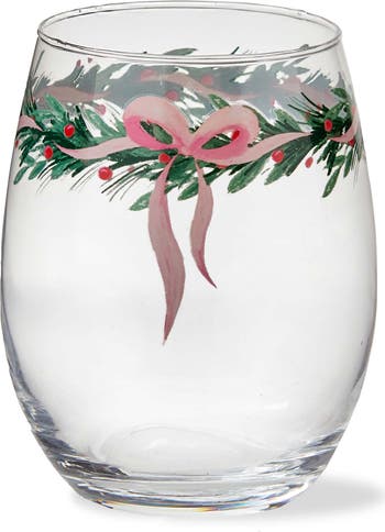 - Celebrate the holiday season with the Very Merry Stemless Wine Glass featuring a festive red bow design perfect for Christmas gatherings and gift giving. This vibrant multicolor glass holds 18 ounces of your favorite wine making it ideal for festive celebrations. Designed for convenience it is dishwasher safe on the top rack ensuring easy cleanup after joyful festivities. With dimensions of 3 inches in length 3 inches in width and 4.75 inches in height it fits comfortably in your hand adding a touch of holiday cheer to your drink service.