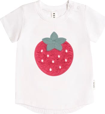 Her soon-to-be new favourite round neck tee. It's made from cloud-like organic cotton in a crisp white hue and features a strawberry embroidery on the tummy. Made with stainless steel shoulder snaps in baby sizes for even easier dressing.