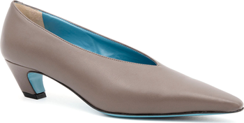 Vespero Pump in Oat Parm. Refined kitten heel with a comma heel and pointed, choked silhouette that flatters the foot. Crafted from Italian Parmasoft leather with nappa lining and insole and a leather sole. 1/2" heel provides elegant, stable year-round wear. Fits true to size.