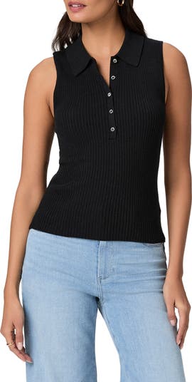 Reach for the sun in this sleeveless polo that owes its curve-highlighting fit to the finely ribbed silk-kissed cotton blend.