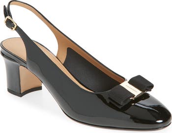 A tonal Vara bow and logo-engraved hardware punctuate this leather slingback pump inspired by a style from the label's '70s archives.