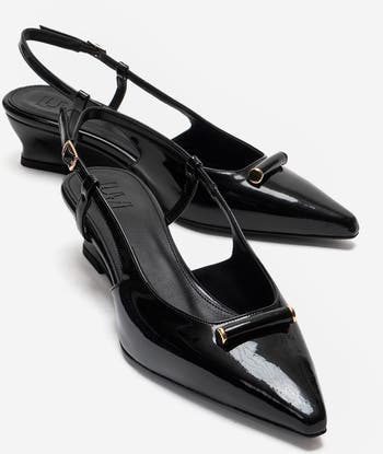 A polished low block heel with a pointed toe and secure ankle strap for everyday elegance