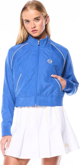 The Via Track Jacket is a fashion-essential and athleisure design for both resort lounging and active pursuits. Made of washed poly nylon for ease and comfort.Finished with our 'ST' monogram logo at left chest and color contrast piping design at raglan sleeves and hand pockets.Pair with the Via Skirt for the full fit. (Sold separately)
