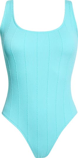 You'll be ready to hit the waves in this one-piece swimsuit featuring a richly textured knit, cheeky back coverage and a supportive shelf bra.
