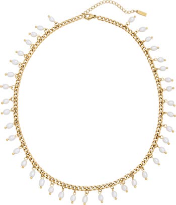 Lustrous freshwater pearls dangle from this curb-chain necklace plated in gleaming 18-karat gold.
