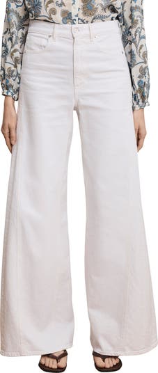 Show off bold, retro style in these ultrawide-leg jeans fashioned from stretch-kissed denim and cast in a bright white wash.