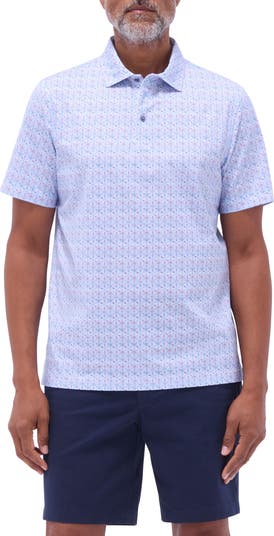 A colorful geometric print brightens a polo cut from breathable, eight-way-stretch OoohCotton that resists wrinkles to keep you polished and comfortable. The smooth double-mercerized knit fabric dries quickly for moisture-managing softness and consistent body temperature.