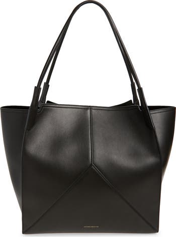 The branding is subtly done, integrated into the very structure of this spacious calfskin-leather tote—a new, elegantly minimalist addition to VB's leather goods line.