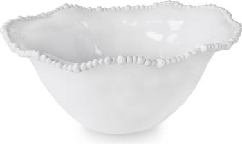 Featuring a pearl rim, it is a natural for fruit, salads and chips. This generous bowl has the substance, weight and appearance of a ceramic piece, but is made of luxury melamine for everyday enjoyment. Perfectly suited for indoor and outdoor entertainment.