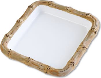 Just imagine presenting your favorite cocktail napkins in a holder of classic Cane style. Create a table with a carefree and classy, Beatriz Ball twist! The VIDA Cane Beverage Napkin Holder (White and Natural), an essential serving piece from Beatriz Ball's VIDA Collection of luxury melamine, is the result of a collaboration between the award-wining tabletop company and noted illustrator, August Wren. With a naturalistic cane inspired rim and a brilliant white surface, the small square tray works well with our VIDA Cane dining sets, serving pieces and flatware. Holds 5 x 5 (folded) beverage or cocktail napkins.