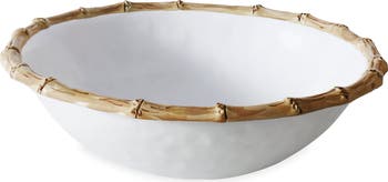With a cane inspired rim and a brilliant white surface, the stylish and generous melamine bowl works well with our VIDA Cane dining sets, serving pieces and flatware. Create a table with a carefree and classy Beatriz Ball twist! Perfect for a variety of serving needs, the bowl has the luster, heft and look of a ceramic piece.