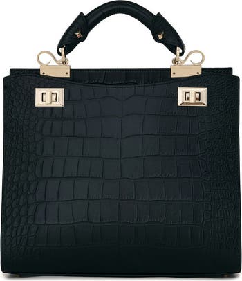 Indulge in the epitome of elegance with this luxurious handbag, a true statement piece for the discerning woman. Crafted from matte, crocodile embossed full grain Italian leather, this exquisite accessory not only enhances your wardrobe but also elevates your style effortlessly. Featuring two spacious compartments, it seamlessly organizes your essentials while exuding sophistication. The delicate hardware accents add a touch of refinement, ensuring that every detail is meticulously designed for the modern woman on the go.With an adjustable and removable strap, this handbag transitions flawlessly from day to night, making it a versatile addition to your collection. Made in Italy