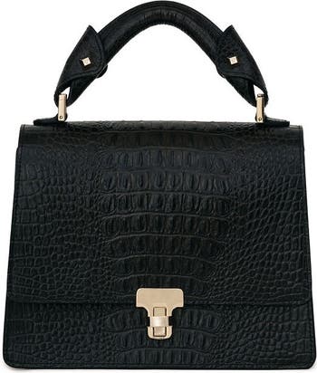 Step into a realm of unparalleled elegance with this exquisite handbag, a true testament to modern luxury. The striking onyx serves as a bold foundation, perfectly juxtaposed with rich chestnut accents that evoke the essence of nature’s strength and sophistication. Crafted from crocodile embossed full grain textured leather, this piece is not just an accessory; it’s a statement of refined taste. Its sculptural design embodies an exquisite balance of intensity and grace, making it a must-have for the discerning woman who values both style and substance. Made in Italy