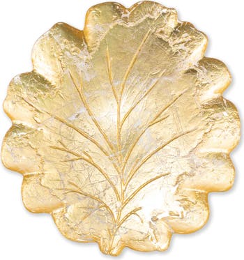 Elevate your table with this shimmering glass platter in an elegant leaf design inspired by textured relief.