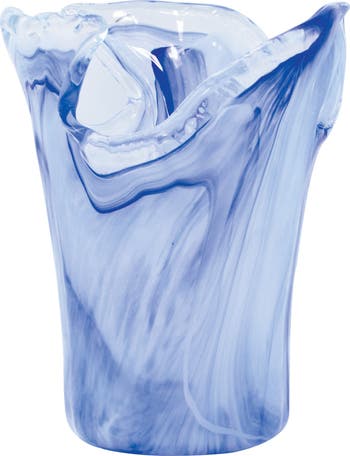 A petaled top recreates the gentle crash of waves on the island of Capri in this exquisite mouth-blown vase crafted in Italy from elegant cobalt glass